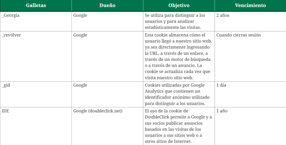 De terceros : No son gestionadas por el editor, sino por un tercero que gestiona los datos obtenidos a través de las cookies.