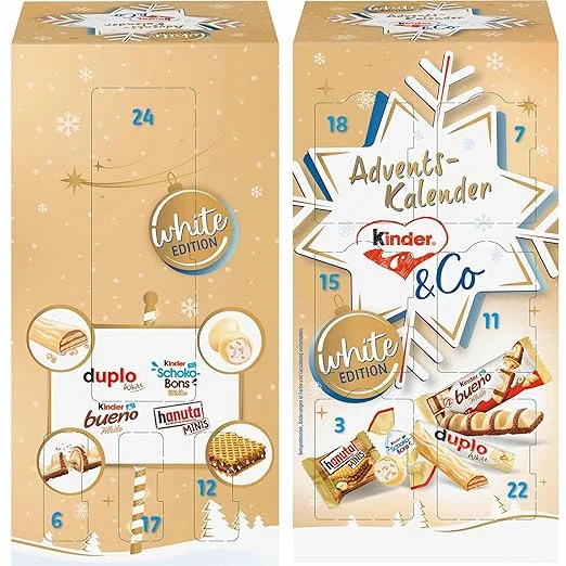 kinder and Co. White Advent Calendar 2025 – Advent Calendar with Chocolate Specialities from Ferrero – Kinder Bueno White, Schoko-Bons, Duplo & Hanuta Minis – 1 Calendar of 263 g